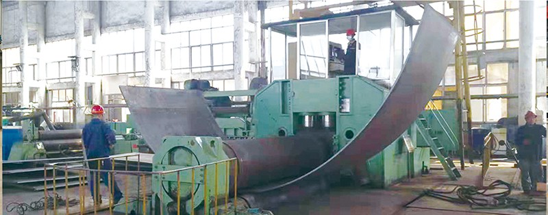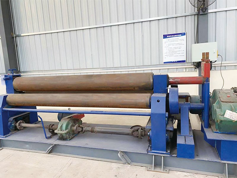 簡析卷板機(jī)的工作原理及應(yīng)用范圍卷板機(jī)是對板料進(jìn)行連續(xù)點(diǎn)彎曲的塑形機(jī)床,具有卷制O 同的形狀卷板機(jī)規(guī)格平整的塑性金屬板通過卷板機(jī)的三根工作輥(二根下輥、一根上輥) 之間,借助上輥的下壓及下輥的旋轉(zhuǎn)運(yùn)動,使金屬板經(jīng)過多道次連續(xù)彎曲(內(nèi)層 壓縮變形,中層不變,外層拉伸變形),產(chǎn)生塑性變形,卷制成所需要 的圓筒、錐筒或它們的一部分。 卷板機(jī)的工作原理是卷板機(jī)上輥在兩下輥中央對稱位置通過液壓缸內(nèi)的液壓油作用于活塞作垂直升降運(yùn)動,通過主減速機(jī)的末級齒輪帶動兩下輥齒輪嚙合作旋轉(zhuǎn) 運(yùn)動,為卷制板材提供扭矩。借助上輥的下壓及下輥的旋轉(zhuǎn)運(yùn)動,使金屬板經(jīng)過 多道次連續(xù)彎曲,產(chǎn)生塑性變形,卷制成所需要的園筒、錐筒或它們的一部分。